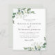 Faça a sensação romântica para o dia do seu casamento com este design moderno barato com as folhas de cor d'água eucalipto.**POR FAVOR LEIA ANTES DE COMPRAR** 1. Medidas de papelaria orçamental de 4,5" x 5,6" e dentro ajustado e envelope A6. Você pode adicionar envelopes brancos ao seu pedido. 2. Cada folha é um item - não é necessário corte. 3. O estoque de cartão padrão é branco brilhante com acabamento semirbrilhante e peso de 110 lbs adequado para papelaria. 4. A opção de papel satin é um papel de 80 lb mais fino, que é mais parecido com as páginas de revistas do que com o estoque de cartão. 5. Se você fizer alterações e o design for cortado ou não parecer direito na tela, use o Serviço de Design ao vivo para ajudá-lo a corrigi-lo. 6. Seu pedido vai diretamente para as impressoras. O que você vê na tela é o que será impresso e enviado a você. Verifique triplamente se há erros de ortografia ou informações incorretas antes de fazer seu pedido.