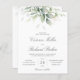 Belo convite para o casamento, com aquarela eucalipto e folhas de ouro.