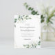 Faça a sensação romântica para o dia do seu casamento com este design moderno barato com as folhas de cor d'água eucalipto e um quadro geométrico com efeito de folha de ouro.**POR FAVOR LEIA ANTES DE COMPRAR** 1. Medidas de papelaria orçamental de 4,5" x 5,6" e dentro ajustado e envelope A6. Você pode adicionar envelopes brancos ao seu pedido. 2. Cada folha é um item - não é necessário corte. 3. O estoque de cartão é branco brilhante, com acabamento semirbrilhante e um peso de 110 lbs, adequado para papelaria. 4. NÃO recomendamos que você escolha a opção de papel satírico, pois é um papel de 80 lb muito mais fino, que é mais parecido com as páginas de revistas do que o estoque de cartão. 5. Se você fizer alterações e o design for cortado ou não parecer direito na tela, use o Serviço de Design ao vivo para ajudá-lo a corrigi-lo. 6. Seu pedido vai diretamente para as impressoras. O que você vê na tela é o que será impresso e enviado a você. Verifique triplamente se há erros de ortografia ou informações incorretas antes de fazer seu pedido.