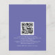 Eucalyptus Leaf Frame Lilac Código QR Convite De Casamento. Um alternativo de 4,5 pol x 5,6 pol com preço inferior. Disponível em um STOCK DE CARTÃO SEMI GLOSS 110 lb, que é a opção padrão (semelhante à espessura de um cartão postal e recomendada para convites), OU UM STOCK DE PAPEL THIN FINISH DE 80 lb FINISH (mais adequado para gabinetes). Adicione seu código QR ao seu site de casamento no verso faz com que esta seja uma opção conveniente para seus convidados para RSVP e veja todos os detalhes sem a necessidade de RSVP separado e cartões de detalhes. Um quadro de eucalipto exuberante em lilases e azuis incorpora o texto que está sobre um fundo branco. O casamento está em um script de conjunto de estilo manuscrito e o resto do texto que você pode personalizar facilmente. Um fundo de azul lilás está em ambos os lados.