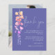 Um valor para o alternativo do ORÇAMENTO em tamanho menor de 4,5 x 5,6" de semirbrilho de 110 lbs, que é de espessura semelhante a um cartão postal (no entanto, não é adequado para uso como cartão postal). POR FAVOR, OBSERVE QUE HÁ UM convite por folha. Orçamento Eucalyptus Periwinkle Foto Obrigado. Azul lilás moderno com folhagem aquosa em tons de pêssego, coral e rosa fluindo para o lado esquerdo e texto para a direita. Um script de estilo manuscrito para Obrigado e o resto do texto que você pode personalizar facilmente. Substitua a foto da amostra no verso por sua favorita do dia do casamento.