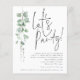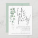 Um valor para o alternativo do ORÇAMENTO em tamanho menor de 4,5 x 5,6" de semirbrilho de 110 lbs, que é de espessura semelhante a um cartão postal (no entanto, não é adequado para uso como cartão postal). POR FAVOR, OBSERVE QUE HÁ UM convite por folha. Eucalyptus De Orçamento Permite Partir Qualquer Convite de aniversário De Idade. Estilo botânico minimalista para convidar convidados para o seu partido por qualquer idade, com água verde escorrendo do lado esquerdo e texto para a direita. Um script manuscrito definido para o Partido do Vamos e o resto do texto que você pode personalizar facilmente.