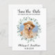 Deixe seu melhor cachorro anunciar seu casamento com este super fofo e elegante "Salve a Data ~ Meus Humanos Estão Casando" cartões salve a data de cachorro de estimação em um moderno e elegante eucalipto aquarela verde design. Personalize com sua foto favorita e personalize com nomes, data e local do casamento. O casamento do orçamento, exceto as datas, tem uma opção de envelope. Este anúncio de casamento de cão será um sucesso para a sua família e amigos. COPYRIGHT © 2020 Judy Burrows, Black Dog Art - Todos Os Direitos Reservados. Orçamento Eucalyptus Pet Wedch Cão Salvar Data