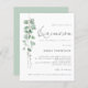 Um valor para o alternativo do ORÇAMENTO em tamanho menor de 4,5 x 5,6" de semirbrilho de 110 lbs, que é de espessura semelhante a um cartão postal (no entanto, não é adequado para uso como cartão postal). POR FAVOR, OBSERVE QUE HÁ UM convite por folha. Orçamento Eucalyptus Script Quinceañera Convite. Estilo botânico minimalista para a festa de aniversário 15, com água verde fluindo para baixo do lado esquerdo e texto para a direita. Um roteiro manuscrito para Quinceañera e o resto do texto que você pode personalizar facilmente.