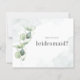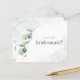 Proposta da Watercolor Bridesmaid Eucalyptus Script com um moderno design botânico minimalista sobre um fundo branco com a tipografia popular, você pode facilmente editar a DICA: Veja abaixo outros itens de eventos de preparação de casamento e pré-casamento, incluindo convites de chá de panela, cartas de agradecimento, etiquetas de champanhe, etc. para este design!