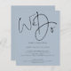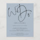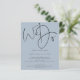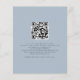 Um valor para o alternativo do ORÇAMENTO em tamanho menor de 4,5 x 5,6" de semirbrilho de 110 lbs, que é de espessura semelhante a um cartão postal (no entanto, não é adequado para uso como cartão postal). POR FAVOR, OBSERVE QUE HÁ UM convite por roteiro de folha: Nós fazemos convite de casamento de código QR azul Dusty. Adicione seu código QR ao seu site de casamento no verso faz com que esta seja uma opção conveniente para seus convidados para RSVP e veja todos os detalhes sem a necessidade de RSVP separado e cartões de detalhes. Um design simples, mas elegante, sobre um fundo de Dusty Blue. Script do conjunto de na moda: Nós fazemos o palco central no topo.O resto do texto que você pode personalizar facilmente. As cores de texto e de fundo podem ser alteradas se você quiser se adequar melhor ao seu tema de casamento através da opção personalizar mais.