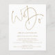 Um valor para o alternativo do ORÇAMENTO em tamanho menor de 4,5 x 5,6" de semirbrilho de 110 lbs, que é de espessura semelhante a um cartão postal (no entanto, não é adequado para uso como cartão postal). POR FAVOR, OBSERVE QUE HÁ UM convite por folha. Orçamento Realizamos Convite de casamento de Código QR de Script Dourado. Adicione seu código QR ao seu site de casamento no verso para que seus convidados possam RSVP e ver todos os detalhes on-line sem a necessidade de gabinetes separados. Um design simples mas elegante com tipografia de ouro. Script do conjunto de na moda: Nós levamos o palco central no topo. O resto do texto que você pode personalizar facilmente. As cores de texto e de fundo podem ser alteradas se você quiser se adequar melhor ao seu tema de casamento através da opção personalizar mais.