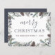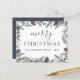 Rua do Orçamento de inverno Feliz Natal com Azul Feriado, Verde e Verde Marrom, Ramos de Árvore Pinheira, Pinecones e um fundo simples.