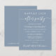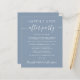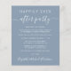 Elemento azul empoeirado, ou anúncio privado de casamento e convite para recepções de casamento. A frente apresenta "Felizmente Sempre Depois da Festa" em uma mistura de uma simples tipografia branca e um roteiro branco contemporâneo com pontos altos, e você pode personalizar sua mensagem e convite e adicionar seus nomes em um roteiro semelhante a assinatura. O verso mostra seus nomes e a data do casamento.