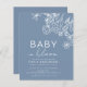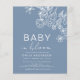Celebrar a chegada de um novo pacote de alegria com um belo bebê no chá de fraldas temático Bloom. Junte-se a nós por uma tarde cheia de amor e felicidade enquanto honramos os futuros pais. O convite apresenta um incrível fundo azul empoeirado, acentuado por uma série de flores silvestres vibrantes.