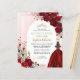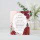 Floral Burgundy Maroon Red Dourada Princesa Vestida Gole Glitter Sparkle Tiara Crown Butterfly 15 de Aniversário Quinceanera Convite