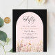Um convite elegante para flores silvestres. Um fundo preto e um arco cor-de-rosa. Decorado com flores silvestres de cor d'água em bege, rosa. 1 folha = 1 convite impresso de borda a borda.
