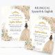 Champanhe Floral Light Champanhe Dourado Princesa Vestido Gole Sparkle Tiara Crown Butterfly 15 BILINGUAL Quinceanera Convite Espanhol