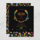 Concursos de aniversário de Fiesta Floral. Este tradicional convite de fiesta é criado com flores multicoloridas e folhas sobre fundo preto que podem ser mudadas para qualquer cor que você preferir usando a ferramenta de edição Zazzle! Outros materiais de festa e decorações estão disponíveis em Metro-Event.com e em Metro-Events no Zazzle.