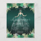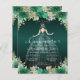 Floral Emerald Green Princess Gress Glitter Sparkle 15 Birthday Quinceanera Convite Bilíngue Espanhol
