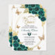 Convite Floral Esmeralda Dourada Borboleta Mis Quinceañera