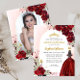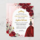 Floral Burgundy Maroon Red Dourada Princesa Vestida Gole Glitter Sparkle Tiara Crown Butterfly 15 de Aniversário Quinceanera Convite