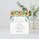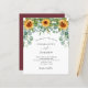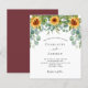 Na frente: um fundo branco decorado com girassóis, eucalipto verde. Personalize e adicione seus nomes e detalhes da festa. Volta: Um fundo tinto de vinho, colorido de marrom