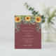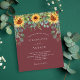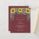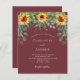 Um fundo tinto de vinho, cor de marrom, decorado com girassóis, eucalipto verde. Personalize e adicione seus nomes e detalhes da festa.