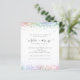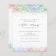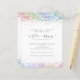 Futuro Chá de panela Rainbow Glitter. Um alternativo de 4,5 pol x 5,6 pol com preço inferior. Disponível em um STOCK DE CARTÃO SEMI GLOSS 110 lb, que é a opção padrão (recomendada para convites), OU um STOCK DE PAPEL THINNER SATIN FINISH 80 lb (ideal para gabinetes). Os envelopes são um extra opcional e são ligeiramente maiores que o tamanho da placa. A futura Sra. está em uma escrita artística com motivos de anéis e coração e o resto do texto que você pode personalizar facilmente. As bordas superior e inferior de ambos os lados estão bordadas com brilho nas cores do arco-íris.