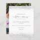 Futuro Obrigados do Chá de panela de Lata Foto Silver. Um alternativo de 4,5 pol x 5,6 pol com preço inferior. Disponível em um STOCK DE CARTÃO SEMI GLOSS 110 lb, que é a opção padrão (recomendada para convites), OU um STOCK DE PAPEL THINNER SATIN FINISH 80 lb (ideal para gabinetes). Os envelopes são um extra opcional e são ligeiramente maiores que o tamanho da placa. A futura Sra. está em uma escrita artística com motivos de anéis e coração e o resto do texto que você pode personalizar facilmente. A brilho prateado elegante borda as bordas superior e inferior. Substitua a foto de exemplo no verso por uma foto divertida do seu evento.