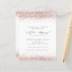 O Chá de panela da Sra. Rosa Dourada Glitter. Um alternativo de 4,5 pol x 5,6 pol com preço inferior. Disponível em um STOCK DE CARTÃO SEMI GLOSS 110 lb, que é a opção padrão (recomendada para convites), OU um STOCK DE PAPEL THINNER SATIN FINISH 80 lb (ideal para gabinetes). Os envelopes são um extra opcional e são ligeiramente maiores que o tamanho da placa. A futura Sra. está em uma escrita artística com motivos de anéis e coração e o resto do texto que você pode personalizar facilmente. As bordas superior e inferior de ambos os lados estão bordadas com brilho em ouro de rosa.