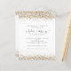 Futuro, Sra. Dourada Glitter Chá de panela. Um alternativo de 4,5 pol x 5,6 pol com preço inferior. Disponível em um STOCK DE CARTÃO SEMI GLOSS 110 lb, que é a opção padrão (recomendada para convites), OU um STOCK DE PAPEL THINNER SATIN FINISH 80 lb (ideal para gabinetes). Os envelopes são um extra opcional e são ligeiramente maiores que o tamanho da placa. A futura Sra. está em uma escrita artística com motivos de anéis e coração e o resto do texto que você pode personalizar facilmente. As bordas superior e inferior de ambos os lados estão bordadas com brilho dourado.