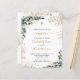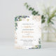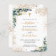 Para o batismo de 2 crianças. Um fundo branco decorado com verde de eucalipto e folhas de ouro e pó de ouro falso. Personalize e os nomes e detalhes da cerimônia infantil. Letras pretas e ouros coloridas. Traseira: fundo branco com poeira brilhante ouro.