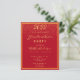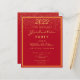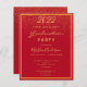 Um convite moderno e na moda para uma festa de formatura de 2025. Para ele e para ela. Um clássico fundo vermelho e chuva confete de ouro. Com uma falsa armação de ouro. Modelo para detalhes de nome e festa. O texto Graduação e o nome são escritos com um script de estilo manuscrito moderno. Ouros. Verso: cor vermelha de fundo, confetti