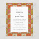 Traga algumas vibrações da década de 70 para o seu evento com este divertido convite de casamento cor laranja, rosa e amarelo inspirado no retrato.