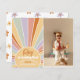 A festa de aniversário Boho convida com uma foto personalizada de sua escolha! Convites de festas de aniversários de inspiração retrorreflectora com um sol estilo hippie, margaridas coloridas e fontes entalhadas. A frente deste cartão apresenta um sol desenhado à mão com raios de sol em diferentes cores pastel do arco-íris. As cores são tons suaves, de modo que a aparência geral do cartão mantém uma sensação brilhante, simples e minimalista, embora seja colorida e divertida! Dentro no centro do sol, o nome da aniversariante está escrito em um guião de chic handwriting. Sua idade aparece embaixo da tipografia corajosa. No lado direito do cartão, uma foto da aniversariante é emoldurada por uma borda branca desenhada à mão. As cartas se revertem a um lindo padrão de flores coloridas margaridas. Perfeito para qualquer garota da idade. Para eventos de vaivém, temas dos anos 60 ou 70, estilos hippies, aniversários de primavera, festas de piscina, diversão de verão, celebrações temerárias ao sol e muito mais! Este modelo de convite é editável online, basta clicar em "Personalizar este modelo" para começar. Para obter edições mais avançadas, selecione "clique para personalizar mais" para acessar a Ferramenta de Design do Zazzle. Como parte da seleção orçamentária no Zazzle, esta folha não é um tamanho de convite padrão ou qualidade de papel. Se quiser que este design num cartão de convite o encontre na nossa loja ou utilize o Zazzle Make Machine para o transferir para o produto da sua escolha. Observe que as placas são impressas como você as vê na tela quando faz o pedido, portanto verifique novamente se há erros de digitação! Outras versões deste design estão disponíveis na coleção vinculada nesta página. Procure na minha loja mais convites de festas de aniversários de sol.