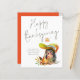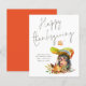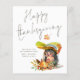 Feliz Dia de Ação de Graças do Hedgehog. Um preço orçamentário Cartão simples MAIS PEQUENO de 4,5" x 5,6" para as saudações de ação de graças em um estoque de cartão SEMI GLOSS 110 lb brilhante (semelhante à espessura de um cartão postal). OBSERVE: O envelope fornecido com este cartão é ligeiramente maior que o próprio cartão. Um ouriço doce com um guarda-chuva de folha e uma tipografia de tendências para o Feliz Dia de Ação de Graças. Personalize facilmente seus nomes na parte inferior e adicione uma mensagem opcional na parte traseira, se desejar.