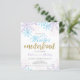 Cute Budget Winter Onederland Primeiro convite para o aniversário com flocos de neve roxos e azuis e reluzentes. Ilustração digital de Kristine Lee. Para obter mais informações, visite www.kristineleedesigns.com