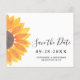 Casamento De Girassol Com Aquarela De Orçamento Salve O Cartão De Anúncio De Data. Girassóis são um símbolo de lealdade e longevidade! Que flor melhor para se ter quando pedir à família e amigos para salvar o seu casamento? Este cartão simples e moderno apresenta uma pintura em aquarela original de um girassol amarelo sobre fundo branco. Porque nós fazemos nossos próprios gráficos, você não encontrará esse design exato de outro designer. Original Watercolor © Michele Davies.