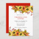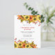 Janto de Ação de Graças de Girassol Convide. Um alternativo de 4,5 pol x 5,6 pol com preço inferior. Disponível em um STOCK DE CARTÃO SEMI-GLOSS 110 lb, que é a opção padrão (mais espesso para convites), OU um STOCK de PAPEL THINNER FINISH 80 lb FINISH (ideal para gabinetes). Os envelopes são um extra opcional e são ligeiramente maiores que o tamanho da placa. Um belo design floral de flores silvestres em cores do outono para convidar seus amigos e família para sua festa de Janto de Ação de Graças. Os sumpiciosos botânicos decoram o topo e o fundo, e personalizam facilmente o texto.