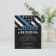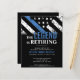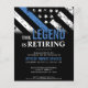 Este design apresenta uma bandeira da polícia com listras pretas e brancas, e uma fina faixa azul de linha também. O texto "A lenda está se aposentando" se senta acima de todos os detalhes partidários para os detalhes do polícia aposentado, xerife, capitão ou chefe do partido aposentado.