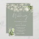 Este elegante convite de casamento verde sábio, com luzes bonito de cordas e verde floral, pode ser personalizado com suas informações em tipografia quic com suas iniciais de monograma no verso. Projetado por Thisnotme©