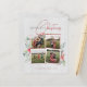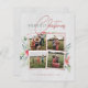 Envie desejos calorosos sem quebrar o banco. Nosso cartão de Natal "Merriest" apresenta um pano de fundo de madeira de pássaro, uma colagem de 4 fotos com um quadro branco e vermelho clássico, e uma charmosa poinsettia de aquarela e detalhes de morango holly.