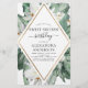As Flores Tropicais Orçamentárias com Palma Verde Floral e Primavera Geométrico de Folha de Ouro Faux ou Convites de festas de aniversários Summer Sweet Sesseis - incluem uma bela e elegante tipografia de guião com flores botânicas tropicais modernas e verde para a festa de aniversário especial 16.
