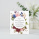 Um adorável chá de panela rústico com texto num círculo branco rodeado por um buquê floral de cor d'água em tons de marsala ou burgundy, marinho azul e rosa. O reverso é uma sombra correspondente de marsala.