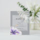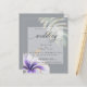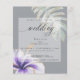 Barato Rustic Watercolor Hibiscus e Convite para Casamento Foliar | NOVO! Convites Leves para Casamento barato - uma flor púrpura e púrpura de hibisco e um adorno de folha verde e uma folha de filodendron dividida adorna diagonal oposta a ambos, borrado em ouro espumante, tudo colocado sobre um fundo de cinza médio com uma camada branca fina para que o texto seja facilmente lido e, no entanto, permitir que o design exiba - bela caligrafia manuscrita - fácil de personalização modelo - design original por ©WhimsicalArtwork™ para o BarefootBride ™. Esta é parte da nossa coleção de casamento Tropical de Hibiscus Watercolor, assim como Chás de fraldas, Aniversário e Convites de Natal. Para perguntas ou assistência, entre em contato com o designer indy.designer@yahoo.com.