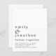 Orçamento Melhor Junto Com Anúncio De Noivado. Um alternativo MENOR de 4,5" x 5,6", compatível com o orçamento. Disponível em um STOCK de PLACA SEMI GLOSS 110 lb ou um STOCK de PAPEL THINNER SATIN FINISH 80 lb. Estilo informal. Seus nomes são grandes em na moda em minúsculas com os detalhes na parte inferior e muito espaço em branco no topo para o estilo contemporâneo. Personalize facilmente o texto para seus próprios detalhes.