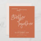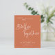 Um valor para o alternativo do ORÇAMENTO em tamanho menor de 4,5 x 5,6" de semirbrilho de 110 lbs, que é de espessura semelhante a um cartão postal (no entanto, não é adequado para uso como cartão postal). POR FAVOR, OBSERVE QUE HÁ UM convite por folha. Orçamento Melhor Junto Terracotta Salvar A Data. Uma design moderna para convidar seus convidados a salvar sua data de casamento com um roteiro de sorvete informal manuscrito para Melhores Juntos no centro para coordenar com o "e" no mesmo roteiro de conjunto entre seus nomes em um fundo colorido de terracota. O resto do texto pode ser facilmente personalizado. Um fundo creme está atrás. As cores do texto e do plano de fundo podem ser alteradas para cores diferentes se você desejar por meio da opção personalizar mais.