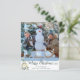 Um cartão de boas-vindas para fotos de Natal, de bom orçamento, impresso em papel semisglosso leve de 4,5x5,6 polegadas, em vez de estoque com uma saudação MERRY CHRISTMAS em um roteiro de caligrafia manchada e árvore de Natal verde com decoração de ouro na frente e no verso oferece uma área de texto para escrever seu ano em revisão ou carta de Natal. As cores podem mudar para coordenar com sua foto. Ideal para orçamentos conservadores e/ou entrega manual a familiares e amigos. ADICIONE ENVELOPES na página de ordenação, se desejar. ASSISTÊNCIA: Para obter ajuda com a modificação ou personalização do design, a alteração de saudação, a alteração de cor, o redimensionamento ou a transferência do design para outro produto, entre em contato com o designer ANTES DE ENCOMENDAR, através da guia MENSAGEM de Bate-papo Zazzle abaixo ou envie um e-mail para makeitaboutyoustore@gmail.com.