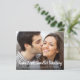 Opção econômica para informar familiares e amigos da sua lista original de convidados que o seu amor e casamento continuarão, mas agora em uma escala menor. Este anúncio de casamento reduzido apresenta sua fotografia de noivado favorita com "Mesmo Amor, Casamento Menor" escrito em grande letra cursiva branca contemporânea na parte inferior, e abaixo você pode personalizar seus primeiros nomes e o anúncio de redução do casamento. No verso, você pode personalizar sua mensagem com mais detalhes e adicionar qualquer transmissão ao vivo virtual, celebrações futuras e informações do site do casamento.