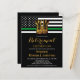 Convites à Reforma Militar da Linha Verde fina. Celebre anos de serviço dedicado, sua aposentadoria militar e convide amigos e familiares para o seu partido militar com esta bandeira moderna linha verde fina com o Dourado Convite à Reforma Militar do Exército. DESIGN americano na Polícia de Sinalizador, cores modernas, preto branco verde e design de ouro. Este convite à reforma militar é também perfeito para a graduação militar, para o soldado que vai embora parte, para destacamentos e para o regresso a casa, para mudar de local na personalização. Veja nossa coleção para combinar presentes de aposentadoria militar, favoritos para festas militares de aposentadoria e suprimentos. COPYRIGHT © 2021 Judy Burrows, Black Dog Art - Todos Os Direitos Reservados. Orçamento Militar Thin Green Line Boots Retirement