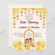 Orçamento Haldi Indiano antes do casamento, bonitinho Hindu casal, flores amarelas, convite para modelo.