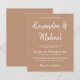 Elegante trendy tipografia do orçamento barato convite de casamento em simples bege de pêssego e letras brancas de mão com nomes de noiva e noivo com roteiro de caligrafia. ++++++++++++++++++++++ Você pode alterar as cores do texto e do plano de fundo após selecionar a opção PERSONALIZAR mais. +++++++++ O convite é adequado para qualquer época - primavera, verão, outono, inverno - recepção de casamento interior.