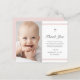 Orçamento Meninas de Elegância Moderna O Cartões de agradecimentos do batismo é moderno e limpo, com listras cor-de-rosa suaves e uma cruz com foto. O tipo personalizável de cinza permite que você altere todas as informações da placa para seu gosto. Perfeito para um batismo feminino.
