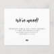 Simples e elegante preto e branco personalizado, movemos um roteiro de caligrafia em movimento. ++++++++ Fácil de personalizar com seu novo endereço residencial! +++++++++ LEIA ISTO ANTES DE COMPRAR! Este é um cartão de casamento de barato orçamentário impresso em uma folha de papel (cada folha tem um cartão). +++ Para obter a melhor qualidade de preço, nosso conselho é escolher o tipo de papel Semi-Gloss (é espesso o suficiente para ser usado para papelaria) +++ Se você precisar de envelopes, escolha a OPÇÃO ENVELOPE. ++ Verifique duas vezes todas as informações e a ortografia do seu texto porque você receberá exatamente o que você vê - ninguém mais verificará nada antes de imprimir. +++ Esta placa foi projetada para o tamanho de 4,5" x 5,6". Caso você escolha outro tamanho do cartão e o texto saia da página, tudo precisa ser corrigido antes de adicionar o produto ao carrinho. Peça ajuda ao Serviço de Design ao Vivo.